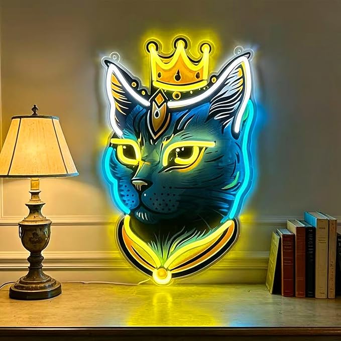 SE MANTIENE FRÍA AL TACTO: Este letrero de neón del Rey Gato luce increíble en cualquier sala de juegos. Juega con estilo con este regalo ideal para fans que son fanaticos de mininos.