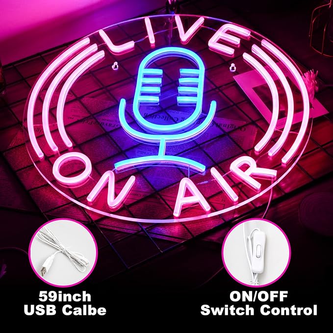 SOBRE ESTE LETRERO DE EN VIVO: Tiene base de acrílico transparente, tiras LED tipo neón y cubierta de silicona de color. Incluye cable USB de 2 metros con interruptor perfecto para decoración de pared en cualquier habitación.
