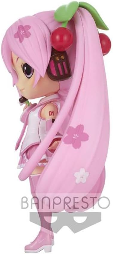 En esta encantadora versión Qposket, Sakura Miku deslumbra con una estética completamente rosada que transmite dulzura, frescura y alegría. Su característico estilo chibi resalta sus grandes ojos brillantes y su expresión suave, creando una presencia adorable y llena de ternura.